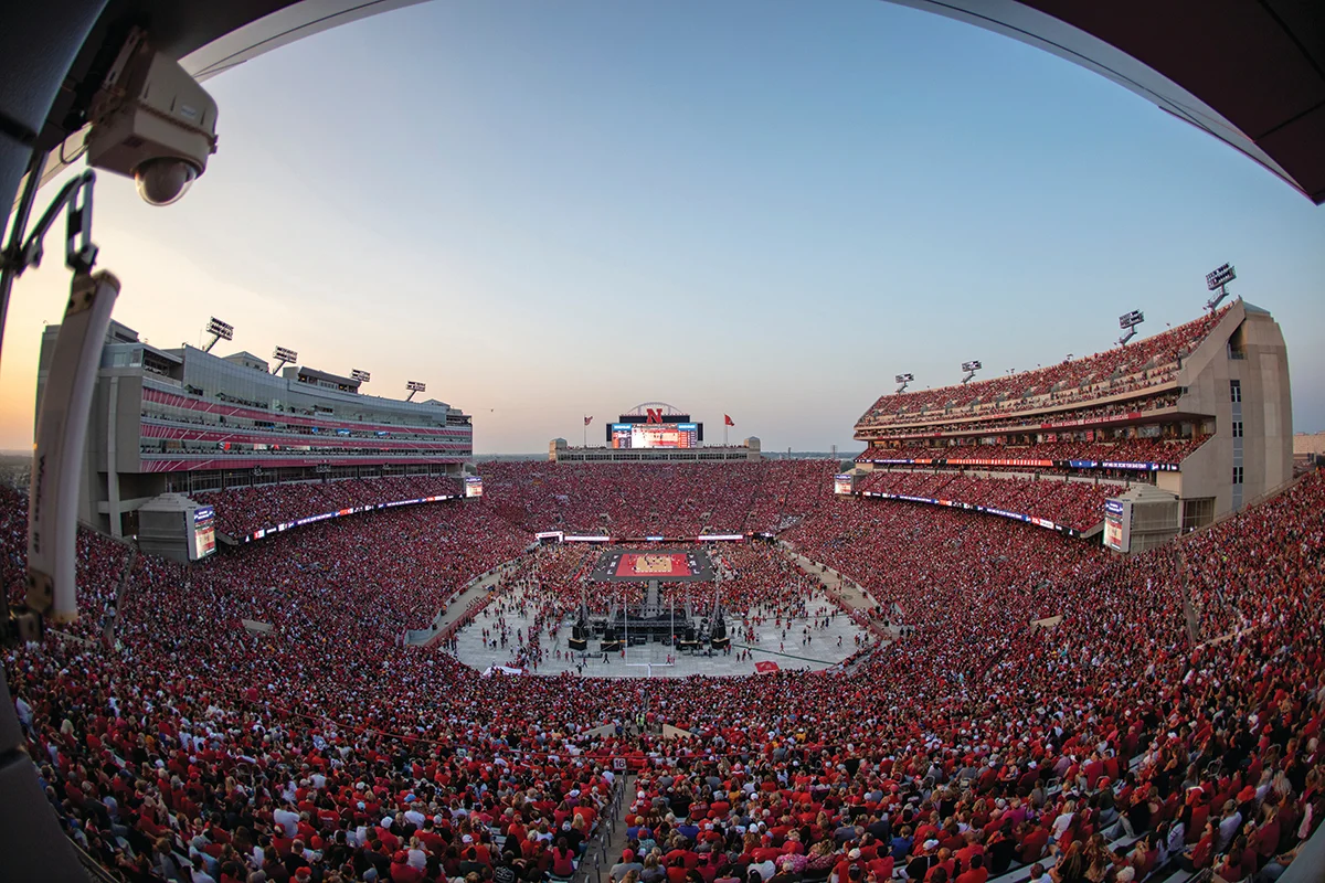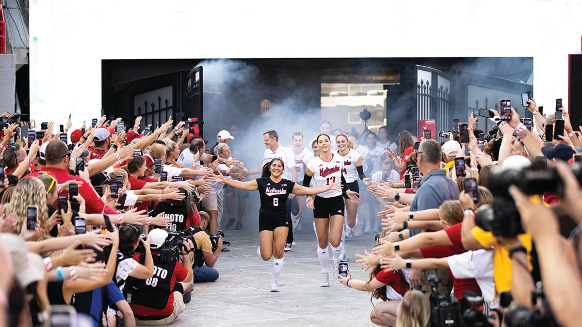 The Huskers volleyball team is welcomed at Memorial Stadium in Lincoln, Nebraska.